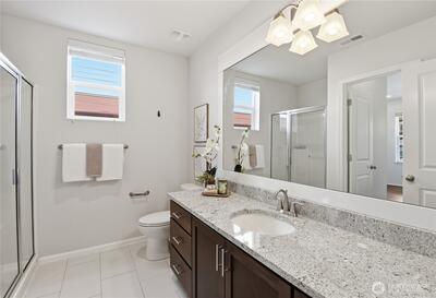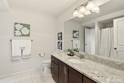 Wake up to breathtaking Cascade views and take in stunning sights of downtown Seattle and the Space Needle from both the primary bedroom and the main-level deck in this exceptional 5-bedroom, 3.75-bath, 2,660-sq-ft home that perfectly blends modern comfort with established charm. Built in 2017, the main floor features an open great room with a cozy gas fireplace, anchored by a 12-foot island—ideal for large gatherings or everyday living. Just off the great room, a spacious covered deck extends your living space and is the perfect spot to enjoy both mountain and iconic city views. The kitchen offers quartz countertops, ample cabinetry, stainless steel appliances, a touchless faucet, and a spacious pantry. The daylight basement adds exceptional versatility with a large recreation room, storage area, and a fifth bedroom with its own ensuite bath. Designed for seamless indoor–outdoor living, a sliding door from the basement family room opens to a covered patio, firepit and fully fen
