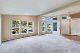 Welcome to this beautifully maintained 2 bed, 1.75 bath Silvercrest rambler in the gated 55+ community of Harvest Gate. This light-filled home offers a spacious, open layout with a generously sized living room and hardwood laminate floors + carpet throughout. The kitchen features newer quartz countertops and trim, a prep sink in the island, breakfast nook, new microwave, and all appliances included—move-in ready from day one! There is a huge Primary bedroom and the flexible den provides the perfect space for guests, a home office, or exercise room. Recent updates offer peace of mind: exterior paint (2019), new roof (2021), new water heater (2024), and brand-new furnace and A/C (2025). A sprinkler system adds to the home’s comfort and convenience. Step outside to your private backyard retreat with a covered deck, vibrant flowers, and established landscaping—ideal for relaxing or entertaining. On-site RV parking is available within the community. Harvest Gate is a highly sought-