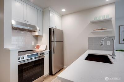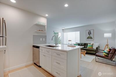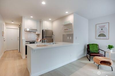 Remarkable opportunity to enjoy iconic Queen Anne city living. This fully remodeled condo offers a smart, efficient layout ideal for full-time in-city living or a darling pied-à-terre. Light-filled living and dining spaces open from the kitchen, framing sweeping urban views of Downtown Seattle, Lake Union, and a peek-a-boo view of the Space Needle. Recent updates have been thoughtfully completed to get you started, including new flooring, refreshed cabinetry, an updated continental bath, and a brand-new washer and dryer—move right in and enjoy. The bedroom features private access to the bath, creating a comfortable and intuitive floor plan that lives larger than expected. The real showstopper is the rooftop deck, where 360° views set the stage for sunsets, city lights, and Fourth of July fireworks. Additional highlights include assigned covered parking in a secure garage, dedicated storage, pet-friendly policies, and no rental cap, offering excellent flexibility for future us