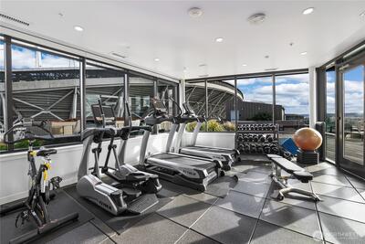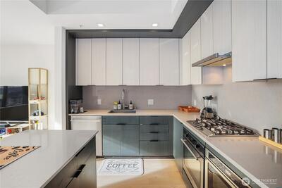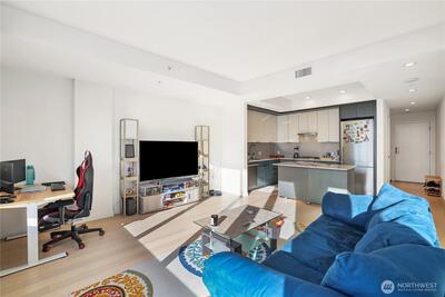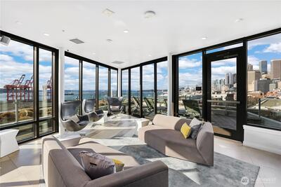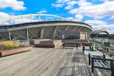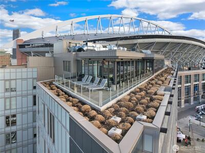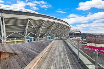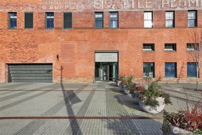 The Jewel of the Gridiron in Seattle’s vibrant Stadium District awaits you! The Gridiron condo pairs the rustic industrial charm of the historic Johnson Plumbing Building w/ contemporary elegance & unobstructed waterfront views. Never be late to a Seahawks, Mariners, & FIFA World Cup game as you live at the doorstep to Seattle sports. This 1-bed, 1-bath condo is only 1 of 5 in the building that has the chef kitchen WITH an island and only select units have both the great room & bedroom soaked in afternoon sun. Bedroom features a custom California closet organizer. Views & natural light come beaming in w/ west facing floor-to-ceiling windows overlooking Pier 46, Elliott Bay, Puget Sound, & Olympic Mtns. Abundance of features such as vaulted ceilings, sun shades, hardwood floors, quartz counters, premium appliances w/ gas range, central A/C, add'l storage unit, in-unit laundry, secured parking, & 24/7 concierge & security. If you are looking for that sophisticated, urban lifestyle, now