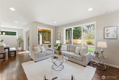 Welcome to this beautifully designed 2016 home in the heart of Finn Hill, where modern comfort, natural light, and timeless Pacific Northwest style come together on a private corner lot. Tall ceilings, wide windows, and thoughtful craftsmanship create a bright, open atmosphere from the moment you step inside. Hardwood floors span the main level, leading to generous living spaces and a covered backyard patio with a gas fireplace that extends your living area throughout the seasons. Set within one of the Eastside’s most beloved communities, this home offers exceptional access to award-winning Inglemoor High School and Arrowhead Elementary. Just moments away, the Kenmore Town Center provides dining, coffee, and gathering spaces at The Hangar, while the Burke-Gilman Trail invites miles of biking and waterfront strolling. Nearby Saint Edward State Park and the historic Inglewood Golf Club — both along the shores of Lake Washington — offer endless opportunities for recreation, nature,