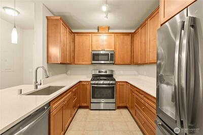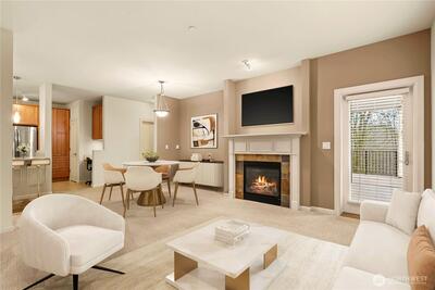 You will love living at the Approach in Newcastle. This spacious end unit condo offers a main floor secured entrance and an abundance of natural light. The kitchen has granite countertops, stainless steel appliances, gas range, ample number of cabinets and a nice sized pantry. The living area has a warm and cozy gas fireplace, tall 9’ ceilings, large windows and leads to the oversized balcony with wonderful territorial views. The nicely sized primary suite has a walk-in closet. The washer and dryer are in the unit. Take the elevator down to the secured garage with 3 parking spaces and locking storage area. The pet friendly complex offers a small dog park. Just a short distance to golfing at the Golf Club at Newcastle and Lake Boren. Walk to local shopping and restaurants: QFC, Safeway, Starbucks, Mod Pizza, Blazing Onion, Tapatio, YMCA and more. Just minutes away from the Tech Hubs in Bellevue, Issaquah, Redmond, Renton, Seattle with Amazon, Boeing, Google, Meta, Microsoft, and T-Mob