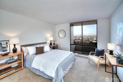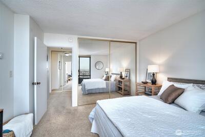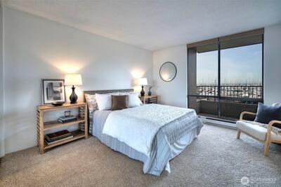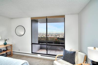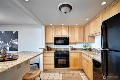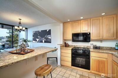 You'll never tire of watching the dancing masts of Shilshole Marina and the billowing sails of boats traversing the Sound. This chic, thoughtfully remodeled 1 bedroom retreat offers a front-row seat to it all. Step onto the deck to take in views of the sun setting behind the snow-capped Olympics, whether you're enjoying a leisurely supper al fresco or tending to your thriving container garden. Explore Sunset West's many amenities including 24 hour security, outdoor pool & spa, game room, fully equipped hobby shop, exercise and party rooms, RV/boat parking, sauna, and electric car charging stations. Embraced by 11 acres of manicured grounds, a stone's throw to Ray's Boathouse, Golden Gardens Park, the Burke Gilman Trail and minutes to downtown Ballard...... It's Resort Living - In City!
