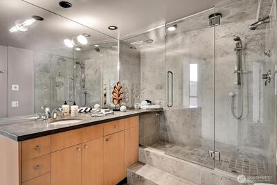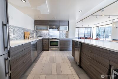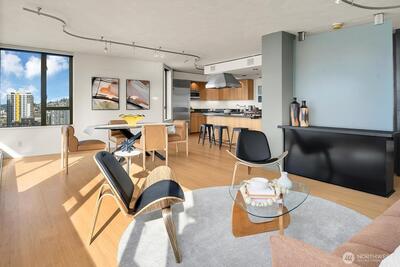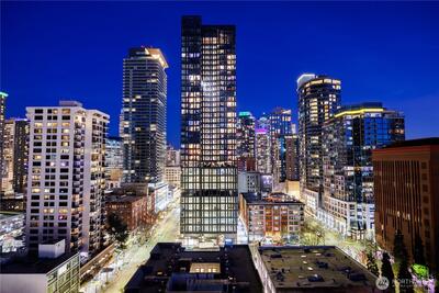 The ultimate Seattle Lifestyle..the Puget Sound at your feet, stunning views of the Olympic Mountain range and city lights! One watches the world float and steam by...freighters, cruise ships, eagles soar and the occasional orcas may be sighted! And did we mention the STUNNING sunsets? This home will take your breath away. There are three private balconies to enjoy the ever changing views. Light-filled with the western exposure, this home features abundant natural light. This urban oasis provides easy access to all that Seattle offers- Pike Place Market, the Olympic Sculpture Park, shops, restaurants, the Seattle Space Needle and the wonderful new waterfront promenade and Aquarium. Once home for the evening, the office /den meets all your needs, fabulous open kitchen with a view and of course and the primary suite featuring the city's skyline. The 7th floor touts an exercise center, an inside pool, a hot tub and sauna. A club house, and even a guest suite for rent. And the deck is not