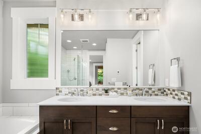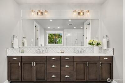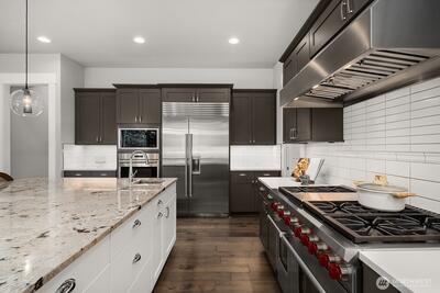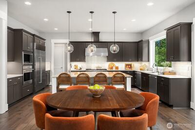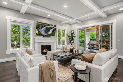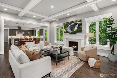 Luxury awaits in West Bellevue’s coveted Calabria neighborhood with this exceptional JayMarc custom home. Just minutes from downtown Bellevue, I-90, and premier shopping and dining, this 5,861 sq ft residence blends timeless elegance with modern comfort. The thoughtful floor plan offers 6 bedrooms, 5.25 baths, soaring 10-ft ceilings, rich millwork, custom built-ins, and abundant natural light throughout. The gourmet chef’s kitchen is the heart of the home, featuring a dramatic quartz island, Sub-Zero refrigerator, Wolf appliances, a walk-in pantry, and seamless flow to the great room, ideal for everyday living and entertaining. A private main-level guest suite provides flexibility for guests or multigenerational living, while the upper-level primary retreat impresses with a spa-inspired five-piece bath and generous walk-in closet. Year-round entertaining extends outdoors to a covered patio with fireplace and a fully fenced, low-maintenance yard. Additional highlights include a 100-