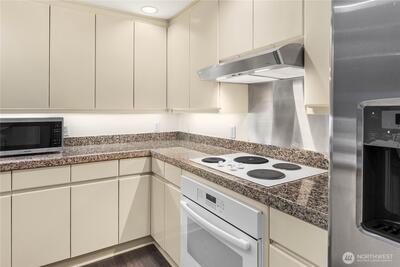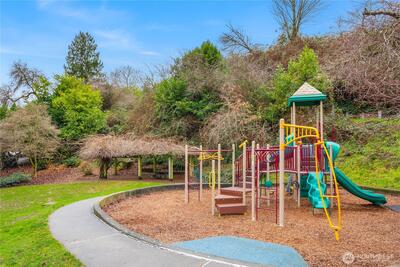 Very spacious and private. This corner unit has no shared walls! Very quiet. Unique for a condominium unit. Great Queen Anne location enjoying impressive sunrises from the unit and secluded deck. Enjoy the adjacent charming Bhy Kracke Park. Quiet, dead-end road with ample parking for guests. Floor plan is well designed with an open Living Room and a full Dining Room layout. This unit features a large open kitchen concept. Gas fireplace, electric blinds in the living room / black out blinds in the bedrooms, five-piece master suite bathroom with an extra-large walk-in closet. Large storage unit, and two parking spaces. Amazing location and close to Seattle center and Upper Queen Anne amenities with cafes, restaurants, shops. Minutes to Amazon, Facebook, Expedia and the Space Needle. Very Walkable, Very Bike-able and Excellent Transit!