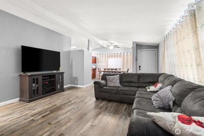 The older I get, the quieter I like it. This 3 bed, 2 bath home is located in a quiet 55+ park on the edge of town out of the hustle and bustle of traffic and city living. This house is ready to go with newer roof, updated flooring, and granite countertops. Also featuring enclosed parking, covered deck, yard area for your pets and reasonable space rent unlike many others. Come see it today and bring us an offer before it's gone, gone, gone.