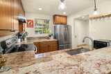 Discover incredible value in this updated condominium, ideally located at the back of the Kingswood community for added privacy and abundant guest parking. The home features two bedrooms, one and a half baths, and one dedicated carport spot. The main level offers newer vinyl plank flooring, a wood burning fireplace and an updated powder room with newer cabinetry, a granite counter and newer faucet. The kitchen shines with upgraded cabinetry, solid granite countertops, farmhouse sink with newer faucet and newer SS appliances, including dishwasher, refrigerator, microwave and stove hood vent—all less than four years old. Recent updates also include a new electrical panel (2025) and a hot water heater (2022). The fans in both bathrooms and the laundry area were also replaced. Upstairs, enjoy brand-new carpeting, two large bedrooms, a full continental bath with an upgraded vanity and solid-surface countertop and a laundry area with newer washer and dryer. The yard was fully fenced 2021 a