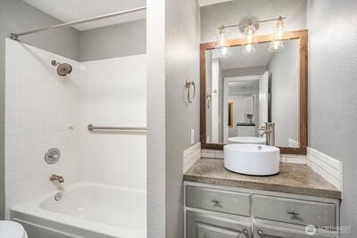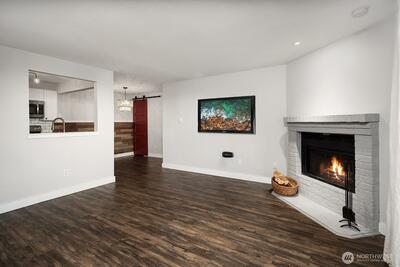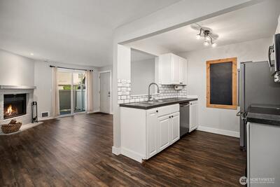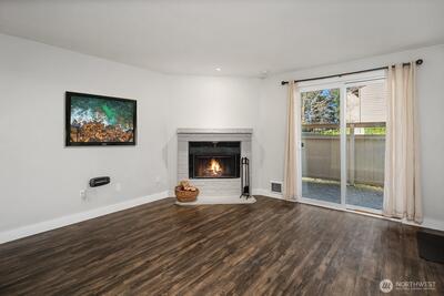 Ground-floor condo living meets Woodinville lifestyle! This darling 1 bed, 1 bath home at Woodland Hills offers easy no-stair access and smart, comfortable living just steps from Woodinville Wine Country, playfields, parks, restaurants, and shops. Sun-lit and move-in ready, the open living and dining area flows to your private patio — perfect for morning coffee or an evening unwind. The efficient kitchen has plenty of cabinet space and room for casual dining. A cozy fireplace adds warmth to your living space, and the in-unit washer/dryer adds everyday convenience. Reserved parking is close by with ample guest spaces. Enjoy community perks including clubhouse, outdoor pool, hot tub, and fitness center. Close proximity to trails, transit options, top-notch dining, tasting rooms and local boutiques makes this a very desirable find. Easy access to SR-522 and I-405 connects you to the tech corridor and commute routes. Perfect for first-time buyers, wine-country lovers, or anyone