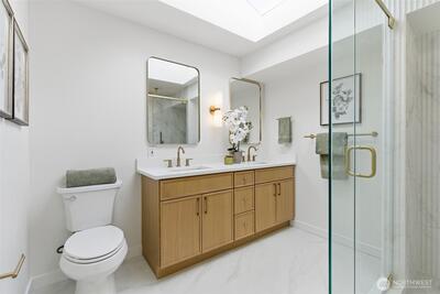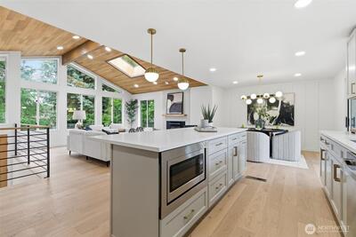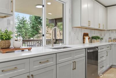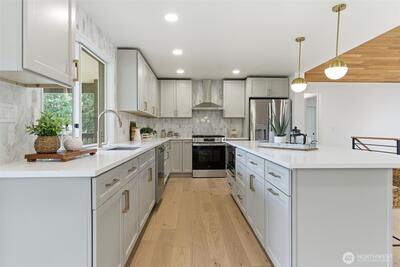 Welcome to 9110 122nd Pl SE, a rare Newcastle opportunity blending modern upgrades with exceptional future potential. Fully remodeled from top to bottom, this 4-bedroom, 3-bath home offers thoughtful design, flexible living, and long-term upside. The light-filled main level features an open-concept layout ideal for everyday living and entertaining. The beautifully updated kitchen showcases quartz countertops, classic shaker cabinetry, stainless steel appliances, and ample storage and prep space, flowing seamlessly into the dining and living areas. Downstairs, the finished basement expands the home’s versatility with an oversized bedroom, spacious entertaining area, wet bar, and additional flexibility for guests, multigenerational living, or a private retreat. What truly sets this property apart is the exceptionally large lot — a rare find in Newcastle — with the potential to build two DADUs (Detached Accessory Dwelling Units). Whether you envision rental income, extended living s