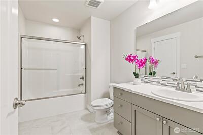 Experience the perfect blend of elegance and versatility in this stunning craftsman-style Willow floor plan by Pacific Lifestyle Homes. Located in The Terrace at Twin Lakes, this better than new residence offers true main-level living with a spacious primary suite featuring a 5-piece bath and walk-in closet. The light-filled layout showcases luxury vinyl plank floors and a gourmet kitchen with a massive island, stainless appliances, and a walk-in pantry. A premier feature is the private ADU with its own separate entry, making it an ideal setup for multi-gen living or a high-potential rental. This self-contained space includes a private living room, bathroom, and spacious bedroom. Upstairs features a versatile loft, two guest bedrooms and expansive storage! Enjoy year-round outdoor living under the covered back patio with a cozy fireplace. Complete with a 3-car garage and central A/C, this home is perfectly situated near shopping, trails and schools. Welcome Home!