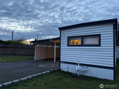 Updated single-wide manufactured home located in the Olga Dor Park, a 55+ community in the Parkland area of Tacoma. This home has received several recent updates, including a new roof, updated flooring, fresh interior and exterior paint, kitchen improvements, and newer plumbing.The home offers a covered carport and exterior storage with a washer and dryer for added convenience. The layout is functional and easy to maintain, making it ideal for buyers who value simplicity, comfort, and lower ongoing ownership costs.Monthly Park dues are $946 and include water, sewer, garbage, and electricity—helping keep monthly expenses straightforward. Conveniently located near restaurants, grocery stores, and with easy access to major freeways and highways.A solid opportunity for comfortable, low-maintenance living in a 55+ community and lower ownership costs compared to traditional housing