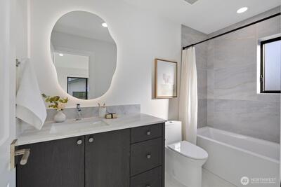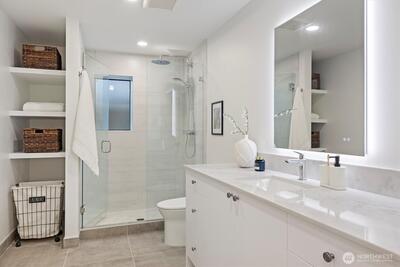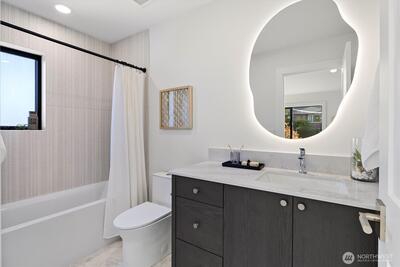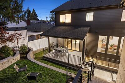 An exceptional new construction, Magnolia residence showcasing refined Northwest Contemporary design and superior craftsmanship. Light-filled interiors and curated designer finishes create an elegant, welcoming atmosphere throughout. The gourmet kitchen opens seamlessly to a spacious living room and covered deck, ideal for indoor/outdoor entertaining. The upper level features a luxurious primary suite with a spa-inspired bath and private balcony, along with two additional en-suite bedrooms. A fully finished lower level offers a generous recreation room with wet bar, three bedrooms, a bathroom, and direct backyard access. Detached alley-access garage. Ideally located near Discovery Park, dining, and shopping—offering the best of Magnolia living.
