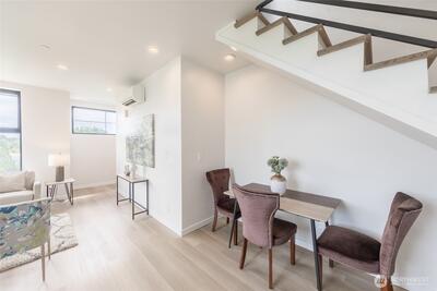 Wonderful Beacon Hill townhome amid private setting, well-appointed home backs to greenbelt and overlooking Daejeon Park. Conveniently located at the confluence of I-5 & I-90, just minutes to downtown Seattle and eastside employment centers. Nearby Eastlink light rail station expects to open in 2026 further enhance its accessibility. Spacious unit features 3Br/3.5Ba, 1,780 Sqft, huge owner suite that occupies entire top floor with large walk-in closet, dual vanity & plush rain shower. Efficient electric fireplace adorns living room, generous kitchen offers extensive island & abundance of cabinets. Highlights include floor to ceiling windows, 1-car garage & balcony with partial Mt Rainier view.