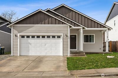 Welcome to this well-maintained 3-bedroom, 2-bath rambler built in 2020, nestled on a quiet cul-de-sac in Tenino. The main living space features a spacious living room, a well-appointed, modern kitchen with a generous island, stainless steel appliances, a great walk-in pantry, dining room, and access to the backyard. You'll love the large primary suite, which offers an ensuite bath with a double vanity and a walk-in closet. You’ll also find two additional spacious bedrooms, a full bathroom, and a convenient utility room. Enjoy a large, level, fenced yard perfect for entertaining, a 2-car garage for all your storage needs, and a nearby neighborhood park. Conveniently located near downtown Tenino, offering easy access to I-5 and Old Hwy 99 while being close to local amenities. This gem won’t last long, so don’t miss your chance to make it yours—schedule a viewing today!