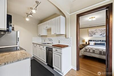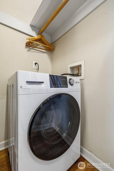 Experience the best of The Betsy Ross in this exquisite 1-bedroom, 1-bath home that solves every vintage building hurdle. While this 1928 Colonial Revival is celebrated for its brick facade and period elegance, this specific unit offers a level of independence typically reserved for modern townhomes. ?Unique to this residence is a private secondary entrance via the alley, allowing you to drive right up and enter directly—a game-changer for moving day, grocery runs, or bike storage. This private doorway opens to a serene, secluded common garden patio, rarely used by others. It provides a tranquil outdoor escape and a perfect canvas for the urban gardener to cultivate a lush container garden or a quiet herbal retreat just steps from your door. ?Inside, this NE corner unit shines with the building’s signature circular floor plan and original hardwood floors that create an expansive, airy feel. Unlike other units where laundry requires a trip to the lower level, this home features its