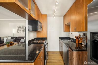 Rarely available spacious 700 square foot floorplan with parking in the Decatur Building, an iconic mid-century gem. The building’s steel and concrete design blends classic Art Deco with contemporary styling. Inside, oversized windows frame views of First Hill’s historic brick buildings while filling the home with natural light. The layout offers a generous living room, a dining area, an updated kitchen, and a large bedroom complete with built-ins and a walk-in closet. The large foyer includes both a linen and a coat closet. In addition to a basement bonus storage unit the building also has secured bike storage and easy parking on the main floor. The Decatur is known for its thoughtful amenities, including a full-time on-site manager, free laundry on each floor and a large typical Laundromat style room in the basement, fiber optic internet, and a rooftop gas grill with sweeping city and Mt. Rainier views. With a Walk Score of 99 and a Transit Score of 100, you’re minutes from Do