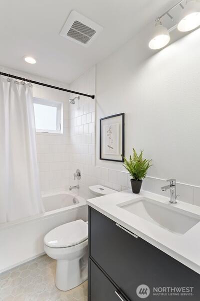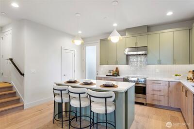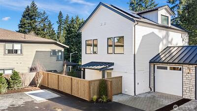 Experience refined modern living in this beautifully crafted new home by Jake’sD, tucked away on a quiet dead-end street in Rose Hill. Thoughtfully designed to balance style and everyday comfort, this 3-bedroom, 2.75-bath residence features a bright, open layout tailored to today’s lifestyle. Striking Northwest Contemporary architecture is complemented by upscale finishes and oversized windows that flood the home with natural light. The main level centers around a gourmet kitchen with a large island and premium appliances—an inviting hub for gatherings or casual nights in. Upstairs, the generous primary suite serves as a private retreat, complete with a walk-in closet and a spa-inspired bath. The top floor offers a versatile bonus room with its own half bath—ideal for a media space, home office, or fitness area. Step outside to a fully fenced yard with thoughtfully designed landscaping, perfect for relaxing or entertaining. Solar panels add energy efficiency, while the one-car