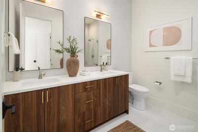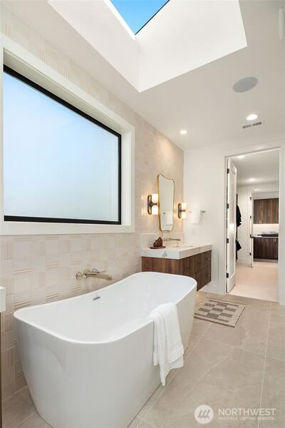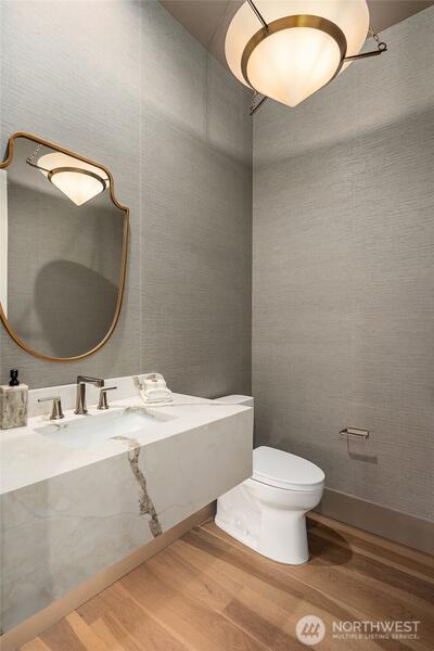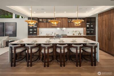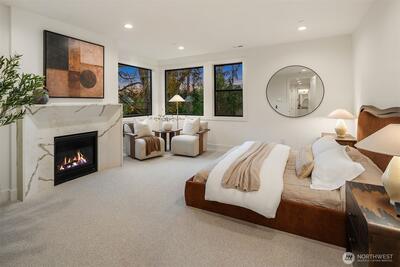 MN Custom Homes presents a stunning transitional design in the heart of West Bellevue. Two story great room, wall of windows, abundant natural light, and floor to ceiling fireplace. Luxurious kitchen, spacious island, warm design elements. Primary suite with fireplace, spa quality bath, and skylights. Five bedrooms anchored by a main floor guest suite. Extensive use of hardwoods. Bonus room, perfect for movie night. Flex room: workout room, craft room, 2nd office. Outdoor living space retreat: fireplace, skylights, heaters, and built-in BBQ. Quiet, private backyard. Sought after Medina Elementary. Just blocks to Downtown Bellevue's world class amenities.