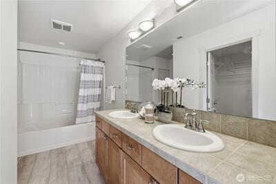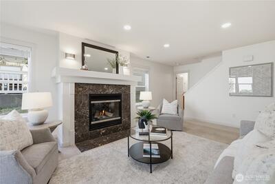 Nestled in the heart of Snoqualmie Ridge, this beautifully refreshed home offers a thoughtful balance of comfort, style, and everyday livability. Fresh interior paint, all-new light fixtures, and updated flooring in the upstairs bathrooms create a bright, modern feel throughout. The open and functional layout flows seamlessly between living spaces—ideal for both daily living and entertaining. A welcoming front porch overlooks the landscaped yard, adding charm and a peaceful place to unwind. Upstairs, a spacious primary suite features an ensuite bath and walk-in closet, complemented by a dedicated family room for added flexibility. The fully fenced back patio features a quaint garden space and backs to a peaceful greenbelt, offering a serene and private outdoor setting. The attached 2-car garage offers added convenience with a separate driveway and access from the other side of the street. Enjoy close proximity to parks, trails, and golf, with easy access to I-90 for smooth commutes t
