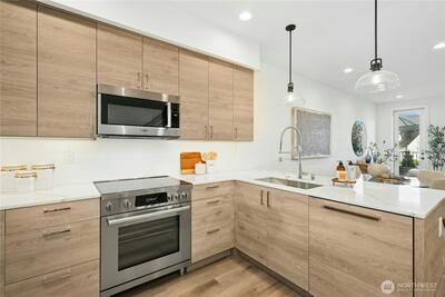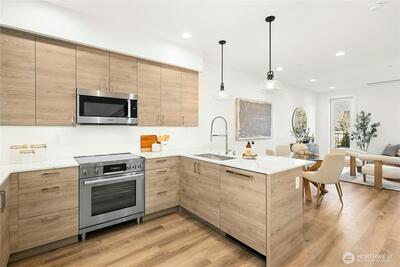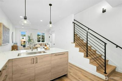 Experience modern vertical living, thoughtfully reimagined for the discerning homeowner. In the heart of downtown Kirkland, this exceptional townhome is surrounded by beloved parks, scenic waterfront strolls, delightful cafés, and everyday essentials. The property blends effortless walkability with a sophisticated residential feel, creating an enviable lifestyle. The highly sought-after Mountain plan transforms each level into a purposeful and flexible living space. With three private ensuite bedrooms, this home is perfect for guests, work-from-home needs, or multigenerational living arrangements. At the heart of the home lies a sleek chef’s kitchen, featuring premium Bosch and Fisher & Paykel appliances, elegant finishes, and an intuitive layout designed for daily living and entertaining. Thoughtfully designed, multiple multi-zone living areas provide natural separation for productivity, creativity, or peaceful retreat, while intentional design moments invite personalization at eve