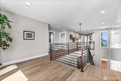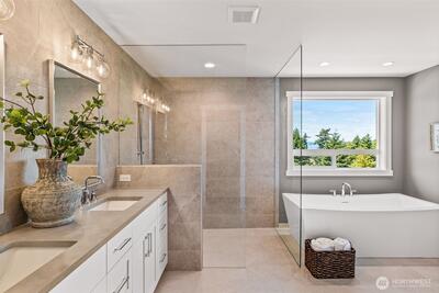 Rare new construction located just one block to the beach & Lighthouse Park in the intimate community of Lower Browns Point. Beautiful details & thoughtful finishes were used to build this stunning home. Wide plank oak floors, 9 ft ceilings & 8 ft doors on entire main level with its open great room. Slider to deck off dining overlooks lush landscaping with sprinklers & full fencing. Epicurean kitchen offers 36-inch gas range, 10 ft island with microwave drawer, amazing natural stone countertops, huge pantry & coffee/wine wet bar. A wall of shiplap is the backdrop for the open staircase & metal railing. Built-ins grace wide hallway upstairs. Sumptuous primary suite has spa-like, tile filled bath, walk-in & Sound view deck & incredible sunsets.