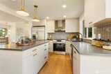 Perfectly positioned in the heart of Finn Hill, this striking home sits on a quiet cul-de-sac lined with wide streets, nearby parks and top-rated schools. New hardwoods and railings lead to the main floor’s chic new kitchen with sleek cabinetry and sophisticated finishes. The dining area with deck access adjoins the light-filled living room - perfect for entertaining. The primary retreat with walk-in closet and ¾ spa-like ensuite is beautifully finished. With two additional bedrooms and gorgeous full bath on one level create the ideal layout. The lower level offers incredible flexibility with a fourth bedroom or office adjoining the bonus room with yard access. A stunning full bath updated with all-new finishes and fixtures completes the space. Don’t miss the newly finished, heated garage/flex space—an incredible bonus area ready to adapt to your lifestyle, whether it’s a home gym, game room, creative studio or the ultimate hangout. Updated and permitted throughout for piece o