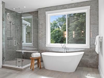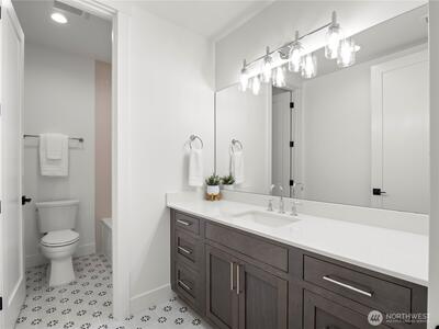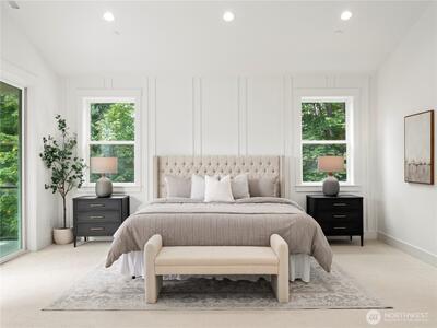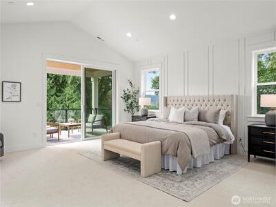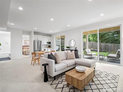 Experience luxury living mins from DT Redmond & Microsoft. This custom designed home offers 5 beds & 4.75 baths across 3 spacious levels. Main floor features expansive great room, full bath, optional den/office & chef's kitchen w/Viking appliances, Huntwood cabinetry & large entertaining island. Upstairs - vaulted primary suite boasts spa-inspired bath & walk-in closet, 3 additional beds/2 baths, versatile bonus room, & laundry. Lower level w/private entry includes 1bed/bath, rec room & kitchenette—perfect for multi-generation living. Enjoy serene greenbelt views from covered decks & direct access Sammamish River Trail. Located w/in top-rated Lake Washington School District. Pictures are renderings.