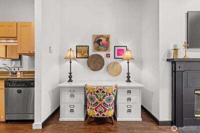 Rare opportunity in Pioneer Square - one of the few condos in the neighborhood offering air conditioning, a true luxury in the historic district. Experience the perfect blend of historic charm and modern comfort in this stunning 2-bed, 1-bath home at the iconic Florentine. This move-in-ready residence features a full suit of recent upgrades including newly-installed AC and heating, updated lighting fixtures, new carpeting, and refreshed closet systems. Soaring 9.5-foot ceilings and a cozy wood-burning fireplace create a warm, inviting atmosphere while the rare addition of air conditioning ensures year-round comfort. Located just steps from Lumen Field and T-Mobile Park - and perfectly positioned for major events like the FIFA World Cup 2026 - you'll also enjoy easy access to the revitalized waterfront, acclaimed art galleries, top-tier dining, and boutique shopping. Complete with a dedicated parking space and secure storage unit, this exceptional condo delivers the ultimate urban lifes