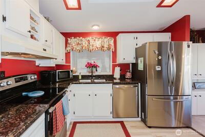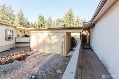 Welcome to Meridian Terrace, a beautiful well maintained 55+ park. This home has undergone quite the makeover! So much NEW here! NEW: Kitchen, bathrooms, flooring, furnace, roof, plumbing, light fixtures and more. Stylish kitchen has granite counters and stainless appliances opens to the inviting dining room and living room. Lots of windows let in the natural light. Large primary suite with a spacious bathroom and vaulted ceilings. 2nd room, currently an office can be a 2nd bedroom. Main bath is all new too and has a tub/shower. Laundry room has tons of storage space. Wrap around deck has a nice sitting area for enjoying nature and company. 2 car carport and storage shed too. Come check this cutie out!! You will fall in love. Very closes to all amenities and shopping. RV storage also available in the park.