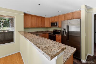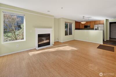 Welcome to this inviting ground-floor condo offering a bright, open layout and easy everyday living with spacious living and dining area filled with natural light, highlighted by large windows and a cozy fireplace. The kitchen features ample cabinetry, generous counter space, a sit-up bar, and a functional layout that opens to the main living area and the sliding glass door leads to a private patio area Just off the main space, you’ll find a primary suite and an additional bedroom with convenient access to the full guest bathroom. Situated in a convenient Tukwila location close to shopping, dining, transit, and major commuter routes, this condo combines comfort, practicality, and accessibility in one well-located home.