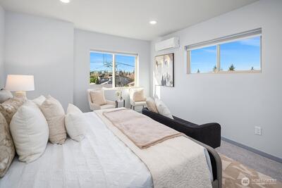 Located in the heart of Loyal Heights, this newer-construction resale is tucked away on a quiet residential street and offers the perfect blend of comfort and convenience. A welcoming open-concept floor plan spans each level with high-end finishes designed for modern luxury living. The gourmet chef’s kitchen features quartz countertops, stainless steel appliances, and a gas range, making it ideal for both everyday living and entertaining. Hardwood floors and abundant natural light fill the home throughout. Two spacious bedrooms with generous closet space and two spa-inspired bathrooms are located on the upper levels, including a primary suite equipped with blackout blinds for added comfort. An upper-level laundry area with additional storage, mini-split heating and cooling, and a tankless water heater provide year-round efficiency and ease. Step outside to enjoy a fully fenced yard along with convenient access to major bus routes, making this home especially appealing for commuters.