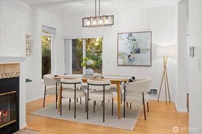 Beautifully updated end-unit, corner-lot townhome in the heart of Redmond. The open floor plan features high ceilings, abundant natural light, and a stunning new kitchen with modern cabinetry, quartz countertops, and stainless appliances. The spacious dining area opens to a private patio overlooking lush green space and trails. Upstairs, the vaulted primary suite offers a full bath with heated floors and a custom walk-in closet. Two additional, light and bright bedrooms with an updated full bath. Attached garage with extra storage. Ample guest parking. Minutes to Microsoft, Amazon, Meta, light rail, shopping, dining, and top-rated LWSD schools. HOA covers exterior, roof, siding, water, sewer, and landscaping. Pre-inspected and move-in ready. No rental cap!