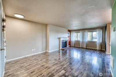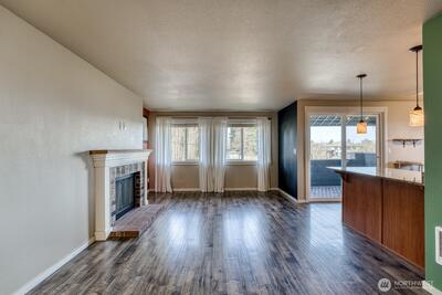 Enjoy easy condo living in this well-located 2-bedroom, 1.5-bath corner unit offering added privacy and partial views of the water and mountains. Ideally situated near Point Defiance Park and the Point Ruston waterfront, this home puts parks, trails, dining, and shopping just minutes away. The interior features fresh paint, newer flooring, a wood burning fireplace, and newer appliances including washer and dryer. Step out to the balcony patio with an attached private storage unit. Two parking spaces are included—one covered and one uncovered.