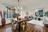 Excellent location in Holly Park. This beautiful end unit townhome sits above a lush greenbelt, offers expansive views of the cascades and absorbs sunlight from morning until night with it's southwest exposure. 4 bedroom, 2.5 bathrooms. The wide open floor plan features formal living and dining, a large updated kitchen and a great room with a view balcony deck. Upstairs is the primary suite with ensuite full bath, plus 2 bedrooms sharing a full bath and a laundry room with full-sized Washer/Dryer. Downstairs is the 4th non-conforming bedroom. Upgrades to the home include a whole house water filtration system, a hidden wine cellar or additional storage under the stairs, and an amazing custom built floating staircase. Beautiful wood floors run throughout the home and the roof is one year old. The garage has 2 parking spaces with lots of additional storage. Easy access to the Chief Sealth trail and all amenities. No Special assessments. A must see!