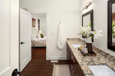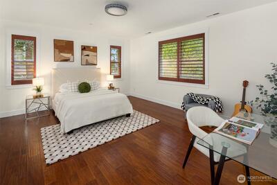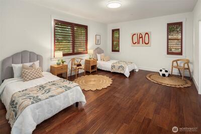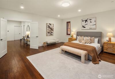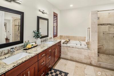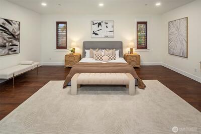5,070 SF of luxury living across 2 spacious levels, highlighted by a rare and highly desirable primary suite on the main floor. This stunning residence offers exceptional scale, comfort, and flexibility for modern living. Perfectly located minutes from Factoria Mall, Bellevue Square, parks, dining, Bellevue Light Rail, & major tech campuses including Microsoft, Meta, & T-Mobile, in one of Bellevue’s most desirable Nbrhd with award-winning schools. Wide neighborhood streets provide plenty of parking for guests, making entertaining effortless. 5 expansive bedrooms feature large walk-in closets, including 2 luxurious primary suites with the main-level primary offering ultimate convenience & privacy, both with spa-inspired five-piece baths. Soaring 10-ft ceilings, a private office, and dual fireplaces elevate the home’s elegant design. The chef’s kitchen with Sub-Zero & Wolf appliances flows into an impressive entertainment lounge with Hestan grill and pool table, ideal for karaoke
