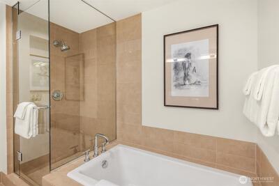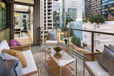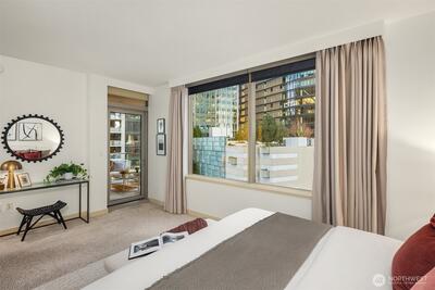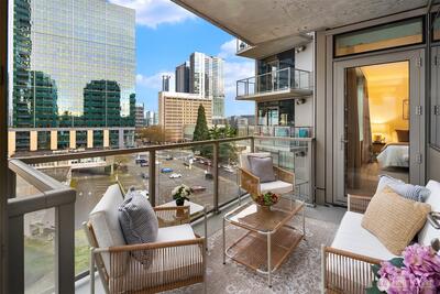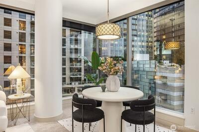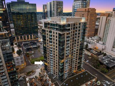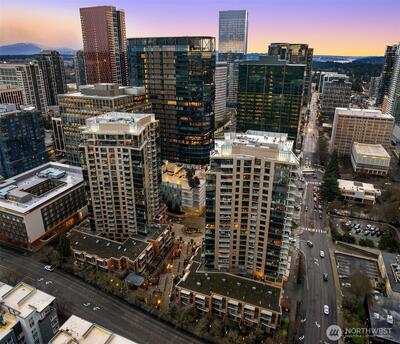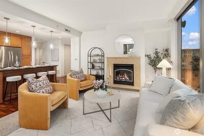 Embrace modern elegance on the 8th floor of Washington Square Tower I, where floor-to-ceiling windows showcase dramatic city views and thoughtfully designed living spaces. This 2-bedroom, 2-bath residence features 10-foot ceilings, all-new interior paint, central A/C, and a gas fireplace, creating a light-filled and comfortable home in the heart of Downtown Bellevue. The kitchen offers gas cooking, stainless steel appliances, cherry cabinetry, granite countertops, and an island, opening seamlessly to the living and dining areas for effortless entertaining. The covered private balcony — accessible from both the living room and primary suite — extends the living space outdoors. The spa-inspired primary bath includes a soaking tub and frameless glass shower. This home includes TWO secure garage parking spaces and access to Washington Square’s premier amenities, including concierge service, fitness center, spa, resident lounge, meeting rooms, guest parking, and EV charging. Ideally l