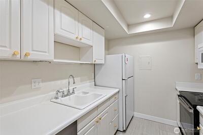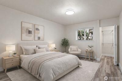 This centrally located corner-unit condo features 2 bedrooms and 1 bathroom with fresh interior paint and is just minutes from Microsoft, downtown Bellevue, and the light rail station. Welcome to Bellevue Manor, offering modern living with updated flooring and an unbeatable location. The building boasts a brand-new roof and siding, providing worry-free ownership. The layout offers space for a possible home office, along with roomy bedrooms filled with natural light and spacious closets. Enjoy the convenience of an assigned parking space, ample guest parking, and access to the outdoor pool and cabana. No rental cap, making this home ideal for investors or owner-occupants.