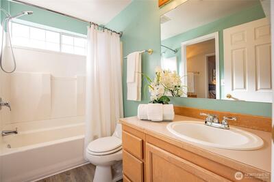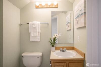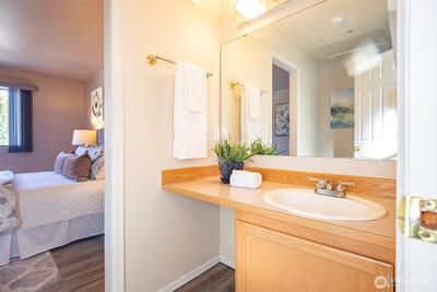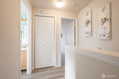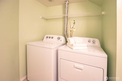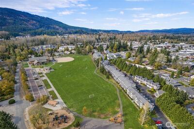Welcome to Park Place Townhomes in the heart of downtown North Bend, where magnificent mountain views greet you right from your own home. This light-filled 2-story end-unit offers privacy, abundant natural light, and stunning views of Mount Si. The spacious Living room features a cozy gas fireplace and seamless access to a private patio—perfect for morning coffee or summer BBQs. The Kitchen is equipped with stainless steel appliances and generous cabinet storage, creating both functionality and style. A convenient half bath and full-size laundry are located on the main level. Upstairs there are 2 spacious bedrooms, including Primary with breathtaking Mount Si views, a large closet, and direct access to the full bath with dual sinks. Updated luxury vinyl plank flooring throughout adds a clean, modern touch. Enjoy the ease of a 1-car garage plus driveway parking. Ideally located just minutes from shopping, restaurants, local bars, trails, and with Si View Park right next door. Quick ac