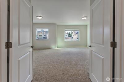 The Preserve in Tacoma’s Fredrickson area by Rush Residential offers affordable homes with upscale finishes in a prime location, and Lot 34 stands out with its large corner lot and thoughtful Magnolia plan. This home features 5 bedrooms and 2.75 baths, including a highly desirable main-floor bedroom with a nearby ¾ bath, perfect for guests or multi-generational living. The gourmet kitchen showcases quartz counters, full-height subway tile backsplash, stainless steel appliances, and custom soft-close cabinetry, all complemented by engineered plank flooring throughout the entry, kitchen/nook, powder room, and great room. Additional upgrades include site-painted millwork, a luxury en-suite, blinds, washer/dryer, refrigerator, and A/C. The fully landscaped, fully fenced, and fully irrigated yard—rare for new construction—pairs beautifully with the rear covered patio, creating an ideal space for year-round outdoor entertaining. HOA maintains the front yard. Convenient access to JBLM