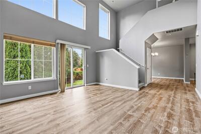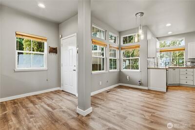 Experience refined living in this elegant 3-bedroom, 2.5-bath detached home in the heart of Kent. Situated on a spacious corner lot within a safe, private community, this residence showcases soaring ceilings and an open-concept design bathed in natural light. The gourmet kitchen flows seamlessly into the inviting living space—perfect for elevated entertaining. Upstairs, generously sized bedrooms offer comfort and versatility within a thoughtfully designed floor plan. Step outside to a large backyard ideal for gatherings, unwind on your private Trex deck overlooking the lake, and stay cool all summer with A/C. Complete with a two-car attached garage and a well-managed HOA with low dues covering lawn and tree maintenance, this home offers effortless luxury living just minutes from highways, shopping, and dining.