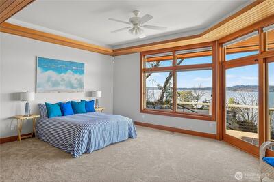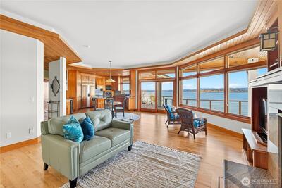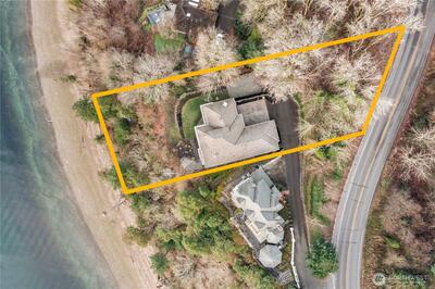 Unobstructed Sound, Mountain, & Sunset Views define this stunning 3,580-SF custom waterfront home w/ 100 feet of frontage on Dash Point. Expansive windows capture ever changing vistas of the Puget Sound East Passage shipping lanes & Mountain Vistas, delivering unforgettable sunsets each evening. Designed for main level living, the home features a view filled primary suite w/ fireplace & spa-inspired bath, an open great room w/ refinished hardwoods, 10 foot high ceilings w/ Yacht inspired backlit wood trim soffits, & chef’s kitchen w/ Sub-Zero refrigerator, oversized island, & Wolf Gas Range. A finished basement w/ second kitchen & additional bdrms add flexibility (ADU?), while wraparound decks, covered patio, hot tub area, & a flat lawn invite you to fully enjoy the serene coastal living, just minutes from amenities.