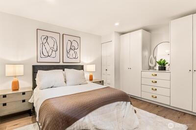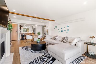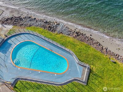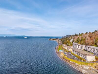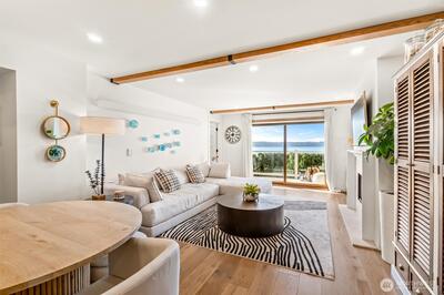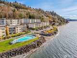 Breathtaking Sound & Mountain Views from this completely remodeled waterfront condo unit at West Beach! Remodeled to perfection with a well-designed, open floor plan concept which maximizes views throughout. Amazing kitchen with quartz counters, stainless steel appliances, custom cabinets, automated blinds & high tech designer wall heat. The primary suite has commanding water & mountain views as well as a Spa Like 5 piece bath. Engineered white oak floors throughout, gas fireplace, storage unit, in unit washer/dryer, designated covered parking spot & large spacious deck for relaxing & enjoying your view. Well managed & maintained complex with so many amenities, such as pool, sauna, community room, workshop & a launch for your kayak. Serene, secluded setting & prime location! A must See!