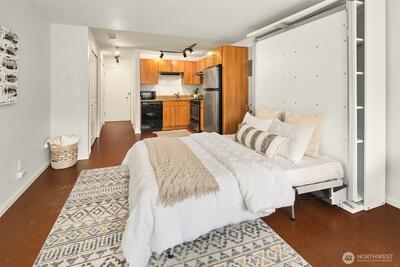 Quintessential Capitol Hill living starts here at Seventeen07. This chic condo sits right in the heart of Seattle's most electric neighborhood, where incredible restaurants, night-life, and shops are just steps away. The layout is designed to make every inch count and is elevated with a sleek Murphy bed/desk combo that transforms the space on demand, plus, an in-unit washer/dryer for every day convenience. Cool off with A/C in the summer, and explore extensive building amenities: gym, yoga room, sauna, lounge, designated storage unit, and a dog wash station. All just one block from Seattle Central, 10 min to light rail, and 20 min to SLU and Downtown. This is city life, perfected.