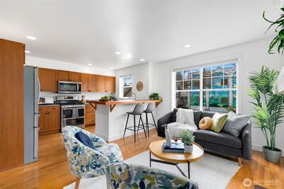 Set on a corner lot in the heart of Seattle’s vibrant Central District, this light-filled townhome offers a wide layout that lives easily across three levels. An entire middle floor is dedicated to living and gathering — a fantastic design choice that creates separation from the bedrooms and makes hosting feel effortless. Whether weeknight dinners, slow Sunday mornings, or a full house of friends, this level offers room to spread out and settle in. Upstairs, two bedrooms provide comfortable retreats, including a primary suite with its own ensuite bath and walk-in closet. The lower level presents an additional bedroom offering flexibility for guests, home office, or rental potential. Outside, a private, fenced yard furnishes perfect amounts of space for warm evenings and or quiet evening moments. An attached TWO-car garage adds an element increasingly hard to find in this part of the city, while frequent transit across the street offers convenient public transportaion when not drivi