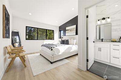 **New construction in Seattle's Greenwood neighborhood.** This custom built detached cottage 3 bedroom, 2.5 bathroom farmhouse inspired home offers direct street access and a fully fenced front yard. Designed for functional living, the open main level features a spacious kitchen with an island that flows into the dining and living areas, creating a comfortable setting for everyday use. Bathrooms are finished with tile surfaces for a clean, modern look. The layout provides flexibility for a variety of living arrangements, including guest space or home office use. The property includes an attached garage along with additional outdoor parking, offering convenience rarely found in similar homes. Located near neighborhood amenities, shopping, dining, and commuter routes, this home combines thoughtful design with practical features in a desirable Seattle location.