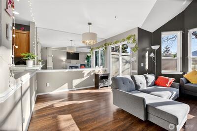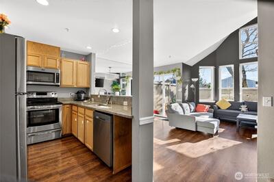 Welcome to a bright and inviting townhome that blends comfort, style, and everyday convenience. Step inside to soaring vaulted ceilings and abundant natural light that create an open, uplifting atmosphere. The thoughtfully designed kitchen offers generous counter space and a welcoming breakfast bar, making cooking and entertaining effortless. This home features two spacious ensuite bedrooms, each with its own private bathroom—perfect for roommates, guests, or anyone who values personal space and comfort. Wide-plank flooring adds a clean, modern feel throughout the main living areas, and a private one-car garage provides secure parking and additional storage. Located in the heart of downtown Kent, this home puts you close to everything. You’re just a few blocks from Kent Station, offering quick access to transit, dining, shopping, and entertainment—an ideal setup for commuters and anyone who enjoys a walkable lifestyle. The community offers an impressive lineup of amenities, inclu