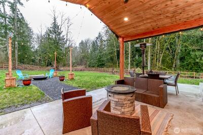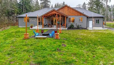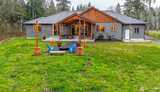Welcome Home to this Gorgeous PNW rambler w/ 3 car garage on 5+ acres with shop/ADU! Custom built in 2023 w/hand milled cedar int. & ext. trim finishes harvested from the property. Open concept floor plan with 3 bdrms, 2.5 bths, office space, primary vaulted suite w/5-piece bath & W/I closet. Vaulted living room open to a spacious kit. w/tile backsplash, granite & quartz counter tops, huge island, propane range, walk-in pantry, large windows & nano doors that flood the hm w/natural light. Property features a fire pit, hot tub HU, exterior hot/cold water spigot, EV charging w/dedicated charging circuit, hm hydrant/fire suppression system, 80-gallon smith signature 900 heat pump hot water tank, Nuwater 6bdrm septic system, 3ft stem wall foundation, propane fireplace & fully fenced back yard. Entertain outdoor yr around under the spacious covered cedar finished lighted patio w/cov. exterior outlets for that outdoor tv & plumed w/propane hookup ready for your BBQ. Separate gated Detached 3
