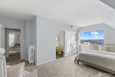 Queen Anne's most coveted street—THE iconic skyline view on the west coast. Now available for the visionary buyer ready to create something extraordinary. This 1928 classic sits on nearly 5,000 SF of prime southwest-facing land with sweeping, unobstructed views of the Space Needle, Mt. Rainier, Puget Sound, Olympic Mountains and the skyline that defines our city. Watch the ferries cross to Bainbridge. Catch alpenglow on the peaks at sunset. THIS is the view that made Seattle and Queen Anne famous—and it's yours every single day. Property features 10ft cathedral ceilings providing unmatched volume and light, especially during those dark winter months. The home has recently been renovated with new wood floors and carpet throughout; new kitchen counters, sink, faucet, paint, and dishwasher and is ready for immediate occupancy. Alternatively, renovate the existing home: open the floor plan and modernize while keeping the historic charm—and capture instant equity in a mark