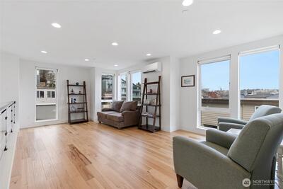 Discover this bright, stylish, and spacious modern townhome, perfectly situated in the heart of Lower Queen Anne. Set back from the main road, this home offers boutique finishes throughout. The generous kitchen is a chef’s delight, featuring quartz countertops and Bertazzoni appliances. Tall ceilings and expansive windows on every floor create wonderfully airy, light-filled spaces. The roof deck offers stunning city views. A rare mezzanine level provides versatile bonus space, ideal for a workout area, media room, game space, or home office. Parking is easy with a private garage plus an additional spot in front for a second car. Best of all, there are no HOA dues! Enjoy a prime location just blocks from neighborhood favorites including Met Market, Citizen, and Laredo’s Grill.